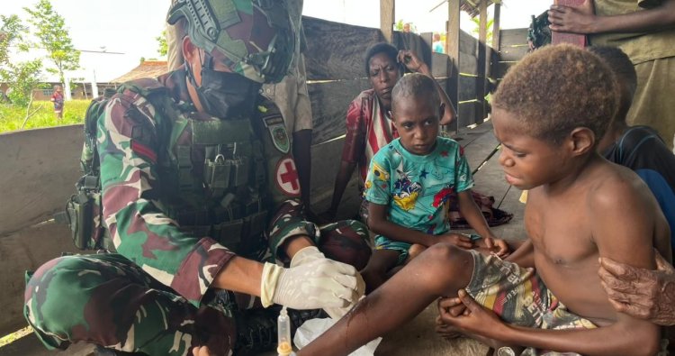 NDUGA - Satgas Yonif 300/Brajawijaya dari Titik Kuat Batas Batu kembali menunjukkan komitmennya dalam pengabdian kepada masyarakat melalui kegiatan Pembinaan Teritorial (Binter) di Kampung Mumugu, Distrik Kenyam, Kabupaten Nduga, Papua Pegunungan, Senin (20/4/2026).