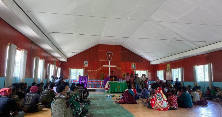Setelah pembagian Alkitab, kegiatan dilanjutkan dengan doa bersama, dipimpin oleh Pendeta Yohanes dan diikuti seluruh jemaat serta personel TNI. Suasana penuh khidmat dan kehangatan itu menegaskan satu pesan: bahwa kedamaian di Papua tidak hanya dibangun dengan senjata, tetapi juga dengan kasih dan iman yang tulus.
